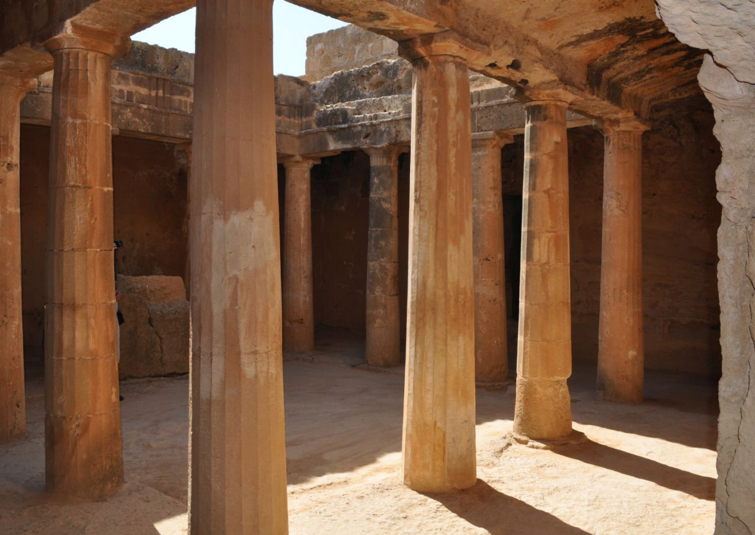 Hommikusöök. Väljasõit muinasajal kuulsatesse Kourioni ja Paphosesse. Teel külastame Kolossi kindlust. See tugev kindlus kõneleb keskaegsete ehitajate heast sõjalisest oskusest. Kindluse ümbruses laiuvad viinamäed ning siin valmistasid Küprose kuulsat Commandaria veini juba Johanniitide ordu rüütlid. Vahemerele avaneva vaatega Kourion on Küprose iidsete paikade hulgas üks huvipakkuvamaid. Linna kõrgperiood jääb Rooma aega, mil ta oli Rooma ida-alade üks pärle kuni linna hävinguni a maavärina ajal. Seda perioodi meenutavad impeeriumiaegne staadion, teater ja luksuslik avalik saun. Kõndides ringi siinsetes varemetes ei ole raske ette kujutada, milline võis see linn kunagi välja näha. Imetleme suurepäraselt säilinud antiikseid mosaiike Achilleuse ja Gladiaatorite majas ning Villa Eustolioses, näeme ka tänapäeval tegutsevat antiikteatrit (1.–2. saj pKr). Siit 80 m kõrguselt avaneb fantastiline vaade Vahemerele. Teel muuseumilinna Paphosesse teeme supluspeatuse armastusjumalanna Aphrodite sünnikohas, Petra tou Romious. Legendi järgi sündis siin kaljurünkadega tipitud rannal merevahust Kreeka armastuse- ja ilujumalanna Aphrodite. Seepärast kutsutakse Küprost ka jumalanna Aphrodite saareks. Paphos on erakordselt kena väike kuurortlinn kaunite merelahtede, metsikute kaljude ja ilusate liivarandadega. Siin on säilinud palju antiik- ja keskaegseid arhitektuurimälestisi, mille mosaiigid kuuluvad Vahemeremaade ilusamate ja paremini säilinute hulka. Kõik Paphose vanad mälestised on kantud UNESCO maailmapärandi nimekirja. Kõigepealt külastame unikaalseid, kaljuse mäe sisse raiutud Kuningate hauakambreid (3. saj eKr). Vaba aeg lõunatamiseks linna keskmes asuva Kalastajate lahe ja keskaegse kindluse juures. Kato Paphose arheoloogiapark on kõige vaimustavam tervel saarel ning heidab uut valgust Küprose ajaloole Rooma impeeriumi perioodil. UNESCO kultuuripärandisse arvatud muistised hõlmavad 2000 aasta pikkust perioodi. Näeme impeeriumi hiilgeaegadel ehitatud luksuslike villade varemeid, kus veel tänaseni on hästi säilinud suurepärased põrandamosaiigid. Imetleme neid mosaiike Dionysose, Aioni ja Theseuse villas. Rahvusmuusikaga õhtusöök Kapetanios hotelli restoranis.